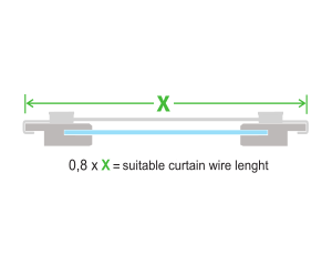 – Measure the frame width and cut the curtain wire to the recommended length (see diagram),