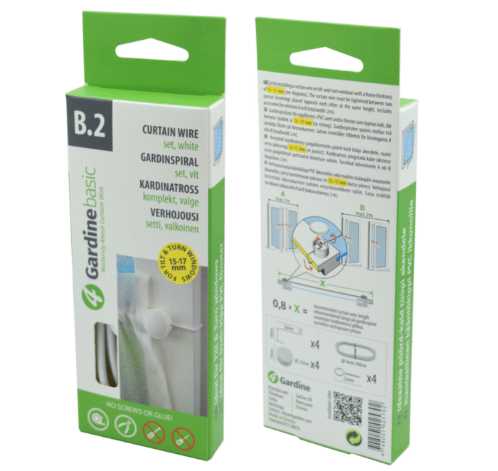 Paigaldamine ei vaja kruve ega liimi, järgides kardinatrossi pikkusesse lõikamisel meie soovitusi